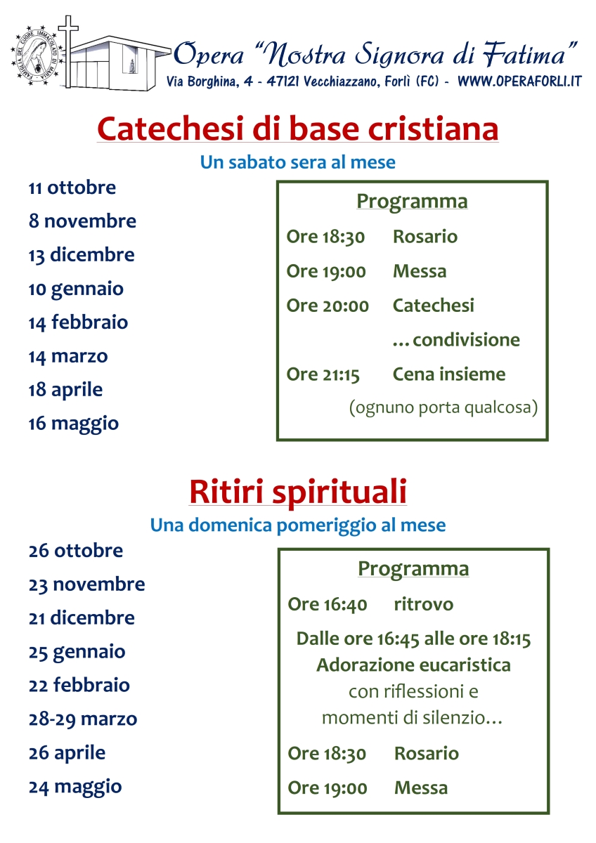 ore 20:00 Catechesi